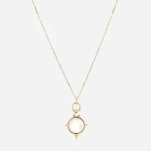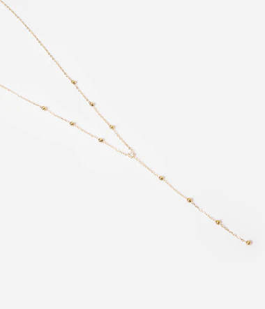Oceľový pozlátený náhrdelník, na ktorom sú na retiazke posypané malé oceľové krúžky. V strede tohto rafinovaného šperku je osadený zirkón, ktorý dodáva outfitu eleganciu a jemnosť.