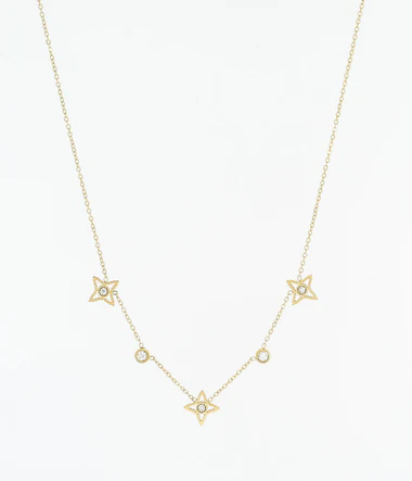 Retiazkový náhrdelník z pozlátenej ocele s gotickými motívmi vykladanými lesklými zirkónmi.