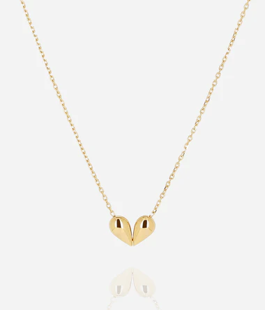 Náhrdelník z hladkej ocele alebo jemne pozlátený ionizáciou, ktorý predstavuje dve kvapky vedľa seba.