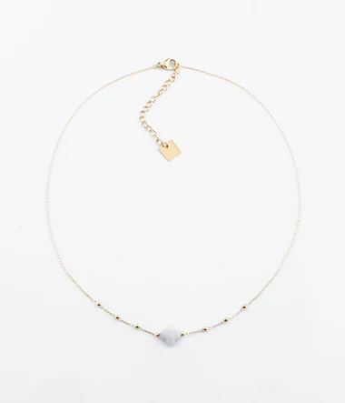 Náhrdelník s retiazkou "ruženec" z pozlátenej ocele, ku ktorej je pripevnený biely kameň v tvare štvorlístka.