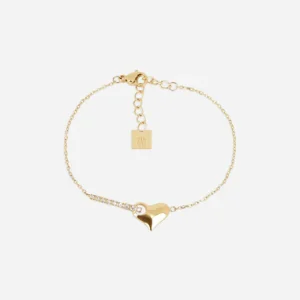 Točený náramok z jemnej pozlátenej ocele, osadený sedlom v tvare slzy, ktoré slúži ako zapínanie.