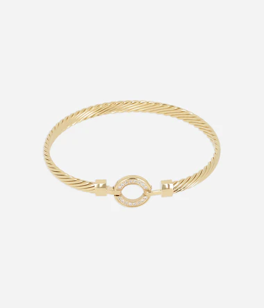 Tenký náramok z hladkej ocele alebo pozlátený ionizačným zlatom. Náramok je točený a má krúžok osadený zirkónovými kameňmi, ktorý vďaka malému háčiku slúži ako zapínanie.