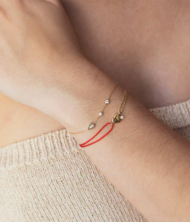 Náramok vyrobený z pozlátenej ocele, na ktorom sa nachádza vzor v tvare kvapky a dva zirkóny.