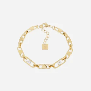 Viacradový náramok z ocele pozlátený jemným zlatom s rôznymi článkami osadenými zirkónovou hviezdou.