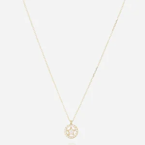 Náramok z hladkej ocele pozlátený jemným zlatom osadený príveskom v tvare ďateliny vykladaným brúsenou perleťou.