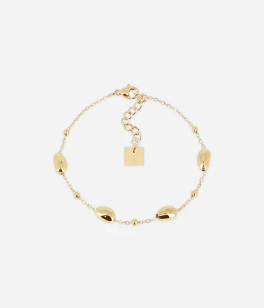 Náramok z pozlátenej ocele so zaoblenými oceľovými intarziami.