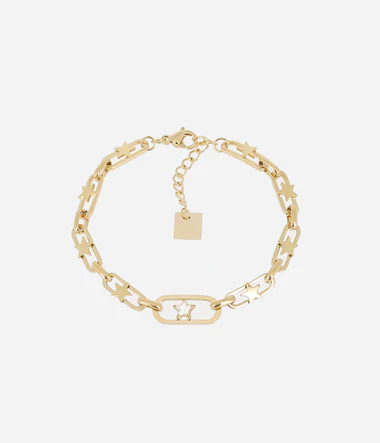 Náramok s článkami z pozlátenej ocele. Tento náramok je vyrobený z článkov, vo vnútri ktorých sa nachádzajú hviezdičky z ocele alebo zirkónu.