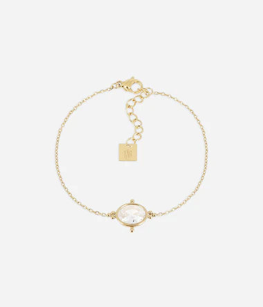 Náramok z hladkej ocele alebo pozlátený jemným zlatom ionizačnou metódou, osadený oválom so zirkóniom.