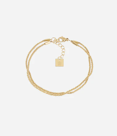 Náramok z pozlátenej ocele, pozostávajúci z dvoch retiazok.