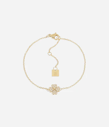 Náramok z hladkej ocele alebo pozlátený jemným zlatom pokovovaným ionizáciou, osadený oceľovým diskom v tvare ďateliny, na ktorom je osadených niekoľko zirkónov.