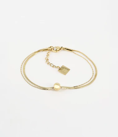 Nastaviteľný dvojitý retiazkový náramok z pozlátený jemným zlatom s kovovou guľôčkou.