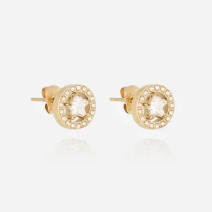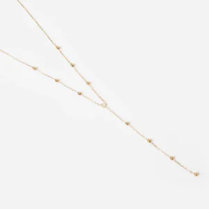 Dlhé náušnice z hladkej ocele alebo pozlátené jemným zlatom, posiate malými oceľovými guľôčkami a osadené zirkónom na spodnej časti.