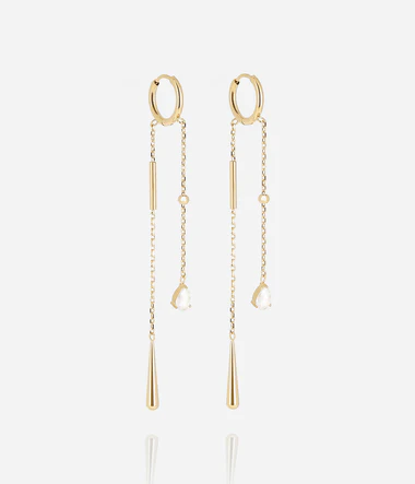 Kruhové náušnice z hladkej ocele alebo jemného zlata pokovovaného ionizáciou. Tieto náušnice pozostávajú z kruhu, na ktorom sú pripevnené dve retiazky, jedna so zirkóniom v tvare slzy a druhá s oceľovou slzou.