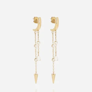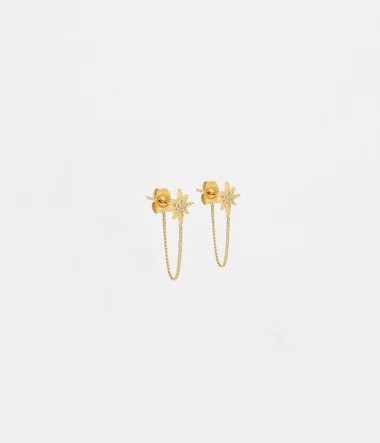 Retiazkové náušnice z hladkej ocele alebo pozlátené rýdzym zlatom s kompasom osadeným zirkónmi, ktoré týmto náušniciam dodávajú veľmi štýlový vzhľad.