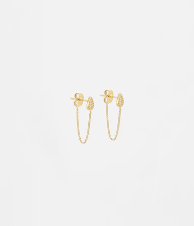 Oceľové retiazkové náušnice pozlátené rýdzym zlatom s kvapkovým vzorom osadeným lesklými zirkónmi.