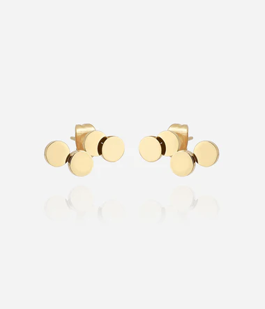 Náušnice z hladkej ocele alebo zlata osadené jemným zlatom a malými oceľovými krúžkami.