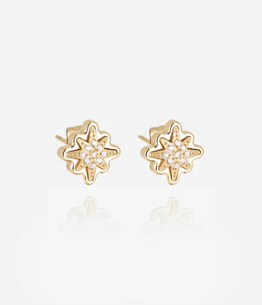 Náušnice z pozlátenej ocele, osadené hviezdicovým oceľovým diskom zdobeným niekoľkými zirkónmi.