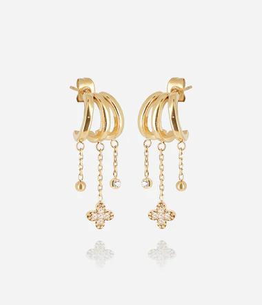 Viackreolské náušnice z pozlátenej ocele, zložené z 5 zarovnaných krúžkov, ktoré vytvárajú efekt akumulácie. Jeden z krúžkov je osadený zirkónmi.