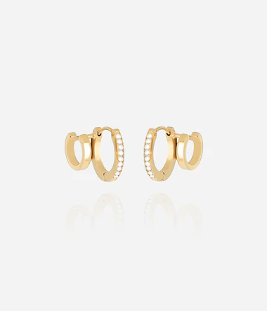 Napichovacie náušnice z pozlátenej ocele, pozostávajúce z 2 krúžkov rôznych veľkostí. Jeden z krúžkov je osadený zirkónmi.
